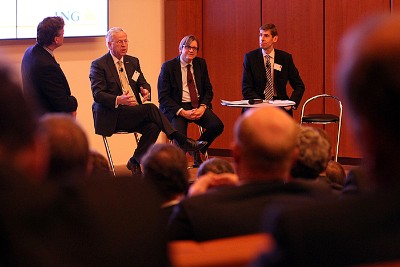 De toekomst van de euro (januari) De economische crisis houdt de wereld nog steeds in haar greep. Maar waarom hebben sommige landen er meer last van dan andere? Waarom krabbelen Amerika en Japan, twee landen met een enorme staatsschuld, ogenschijnlijk alweer uit het dal? En waarom glijdt Europa juist steeds verder af? Heeft de euro nog toekomst? Deze en andere vragen kwamen aan de orde tijdens de ING Conference op 11 januari. ING topmannen Jan Hommen en Koos Timmermans, bijgestaan door hoofdeconoom Mark Cliffe, vertelden de meest invloedrijke ondernemers van Nederland over de strategie van ING voor 2012. Europarlementarier en voormalig Belgisch premier Guy Verhofstadt praatte de aanwezigen vol vuur bij over de toekomst van Europa. InterAxxie was aanwezig om de conferentie in woord en beeld vast te leggen. Een uitdagend en enerverend begin van het nieuwe jaar!