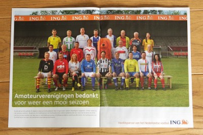 Monumentaal kiekje (mei) Ik sta niet bekend als voetbalfanaat, maar de Voetbal International is uiteraard wel een monument van een blad in Nederland. Vandaar dat ik heel erg trots ben dat ik de grote advertentiefoto van de medio mei-editie op pagina 2 en 3 van de VI heb mogen maken. ING Nederland gebruikt de foto als onderdeel van een campagne die de komende tijd zowel in print als online te zien zal zijn. Heel speciaal! | |